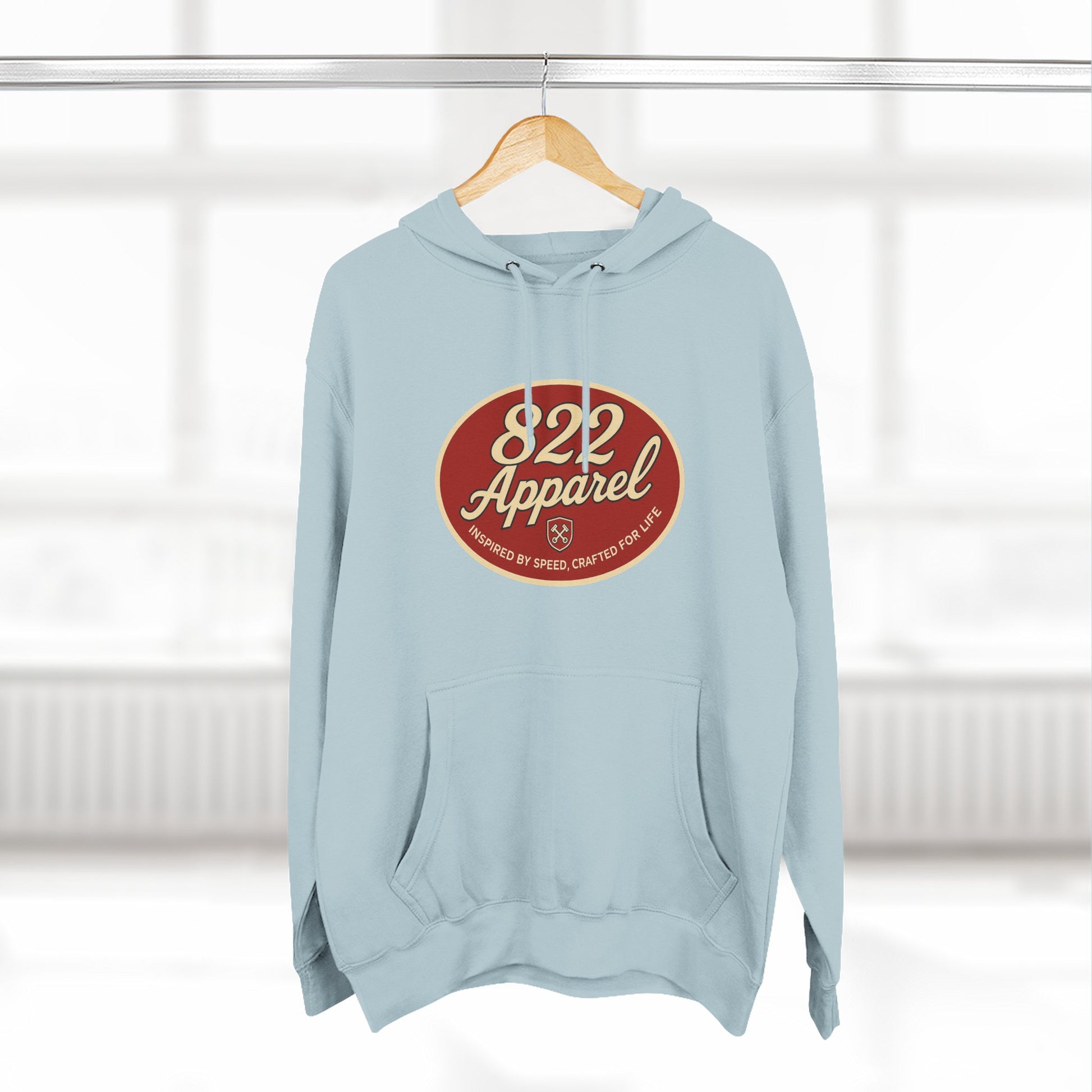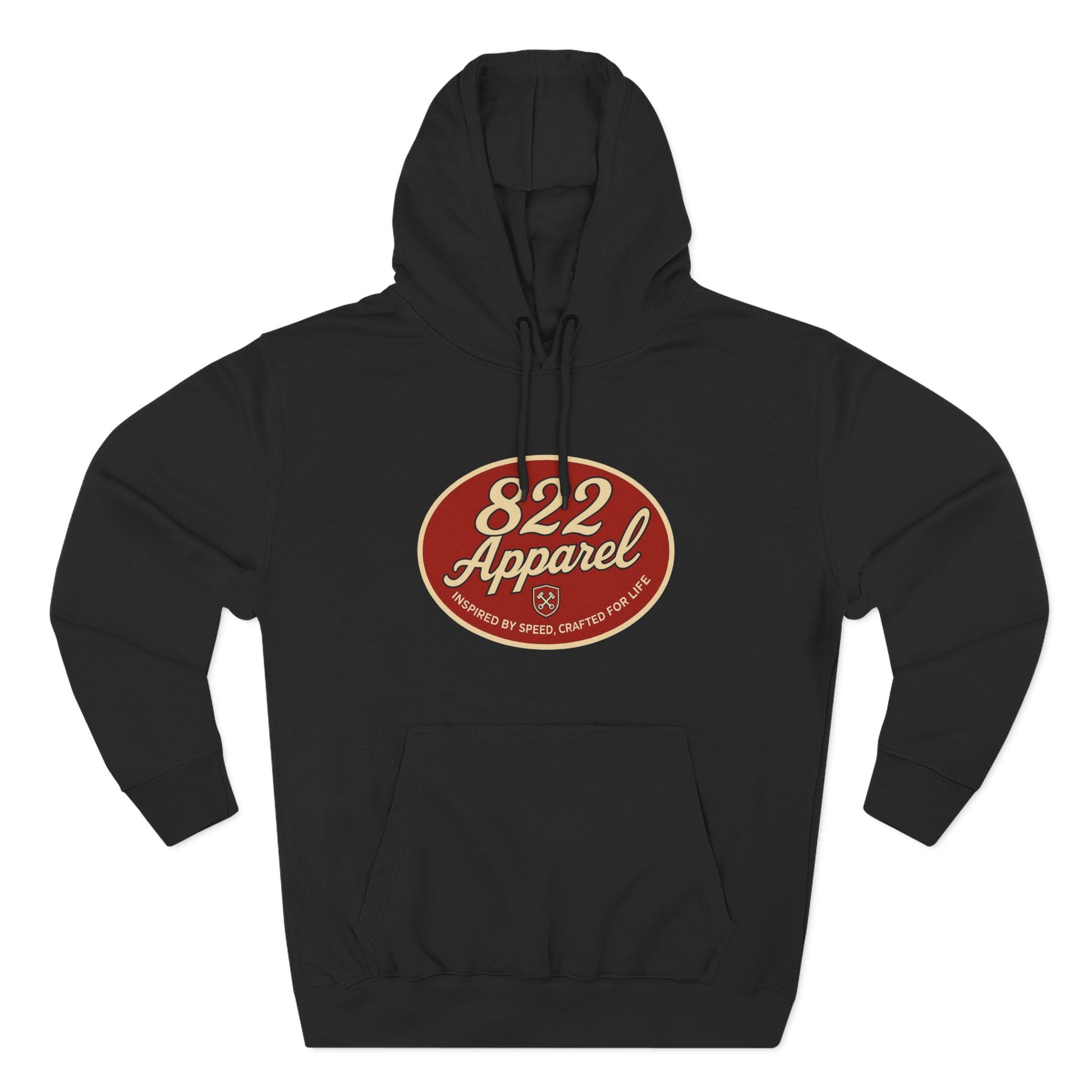 Cozy Three-Panel Fleece Hoodie with Retro 822 Apparel Design